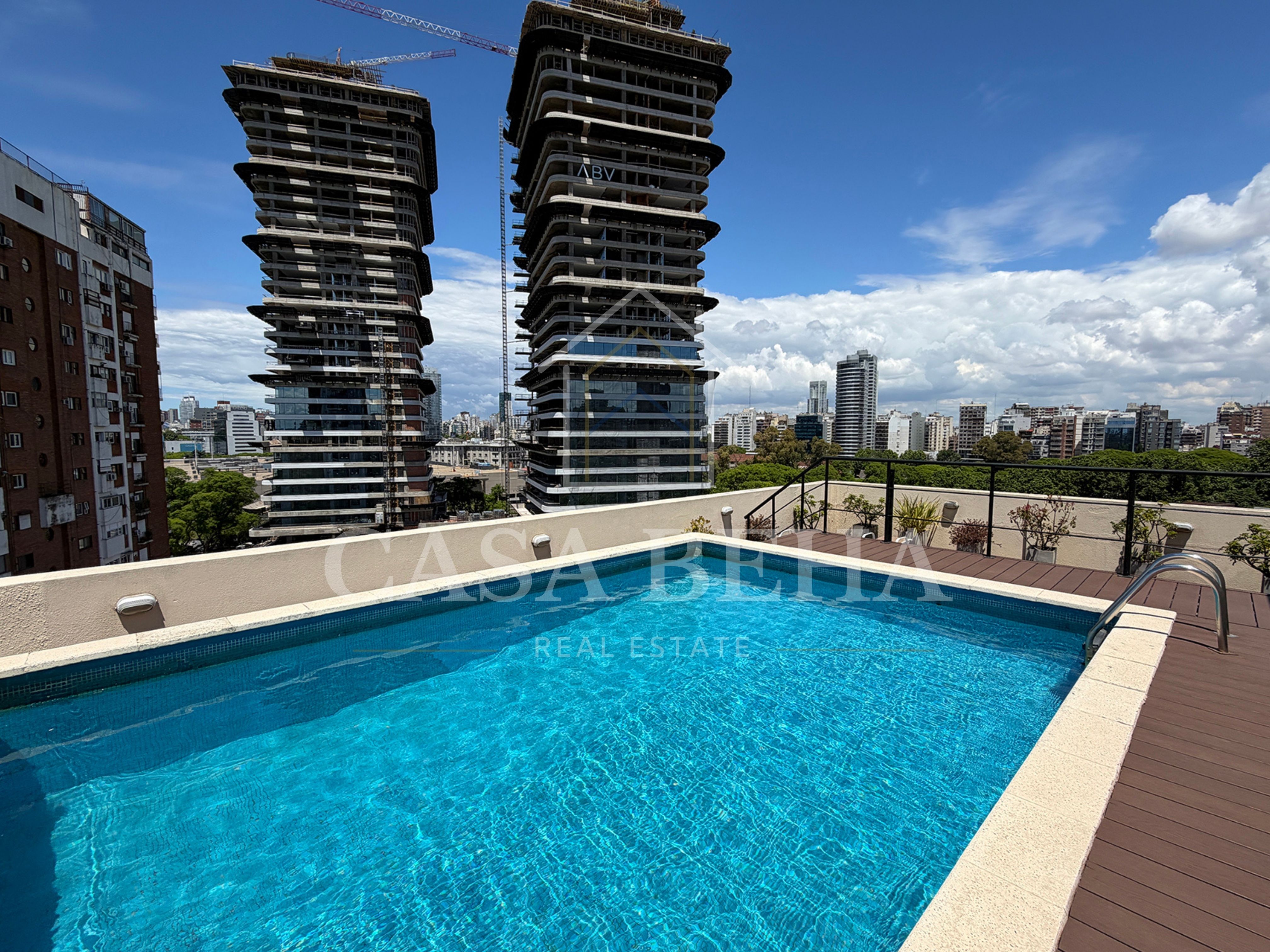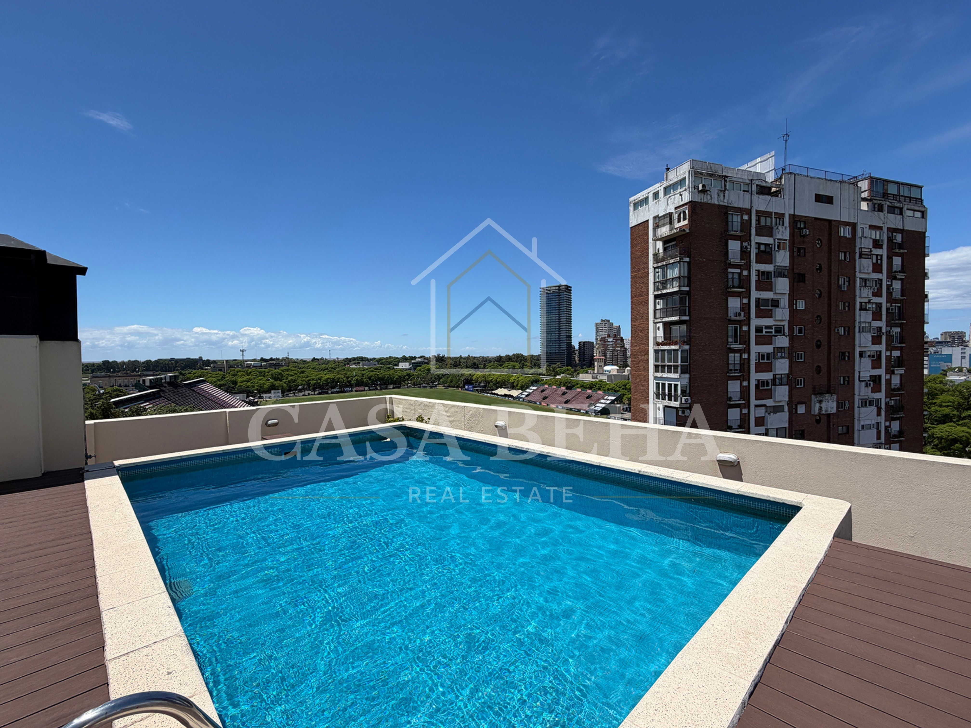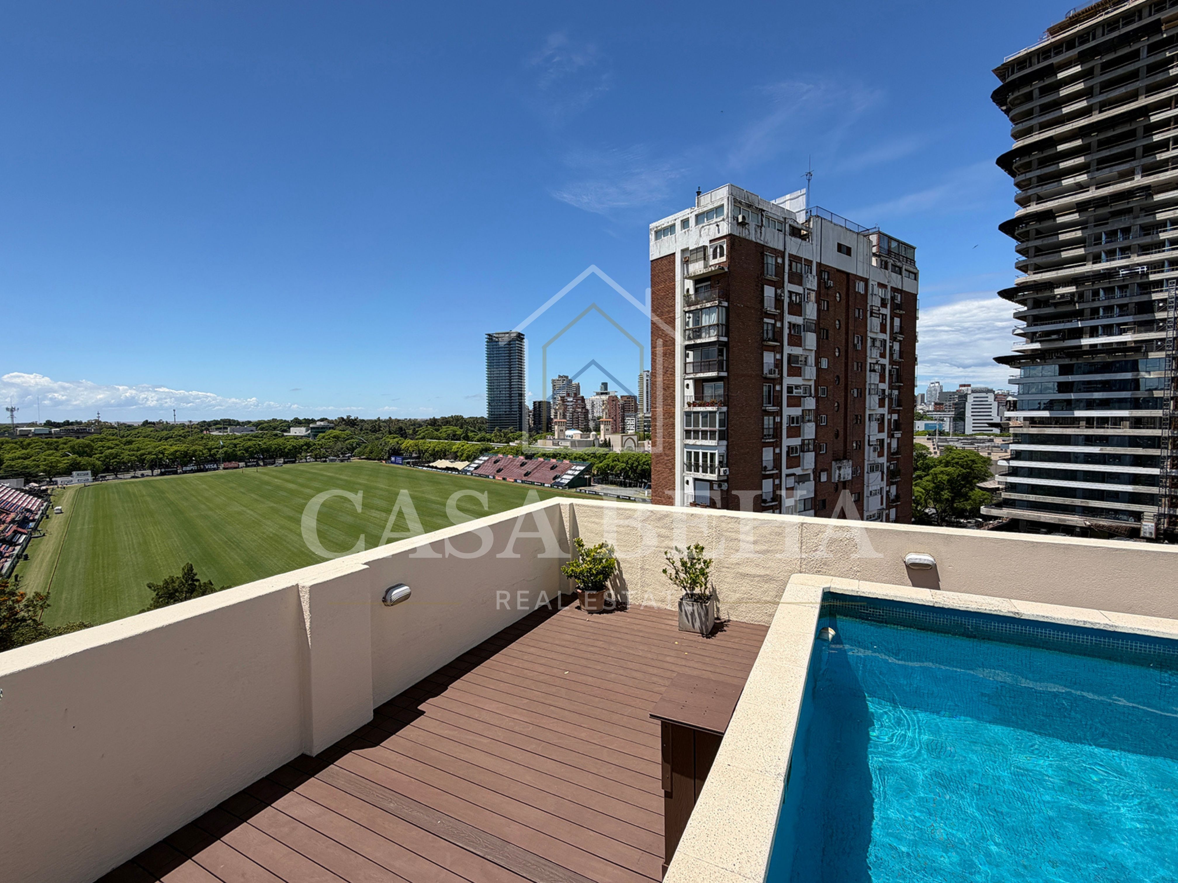 El edificio cuenta con seguridad 24 horas y piscina con vista abierta al Campo de Polo, un diferencial único en la zona.
